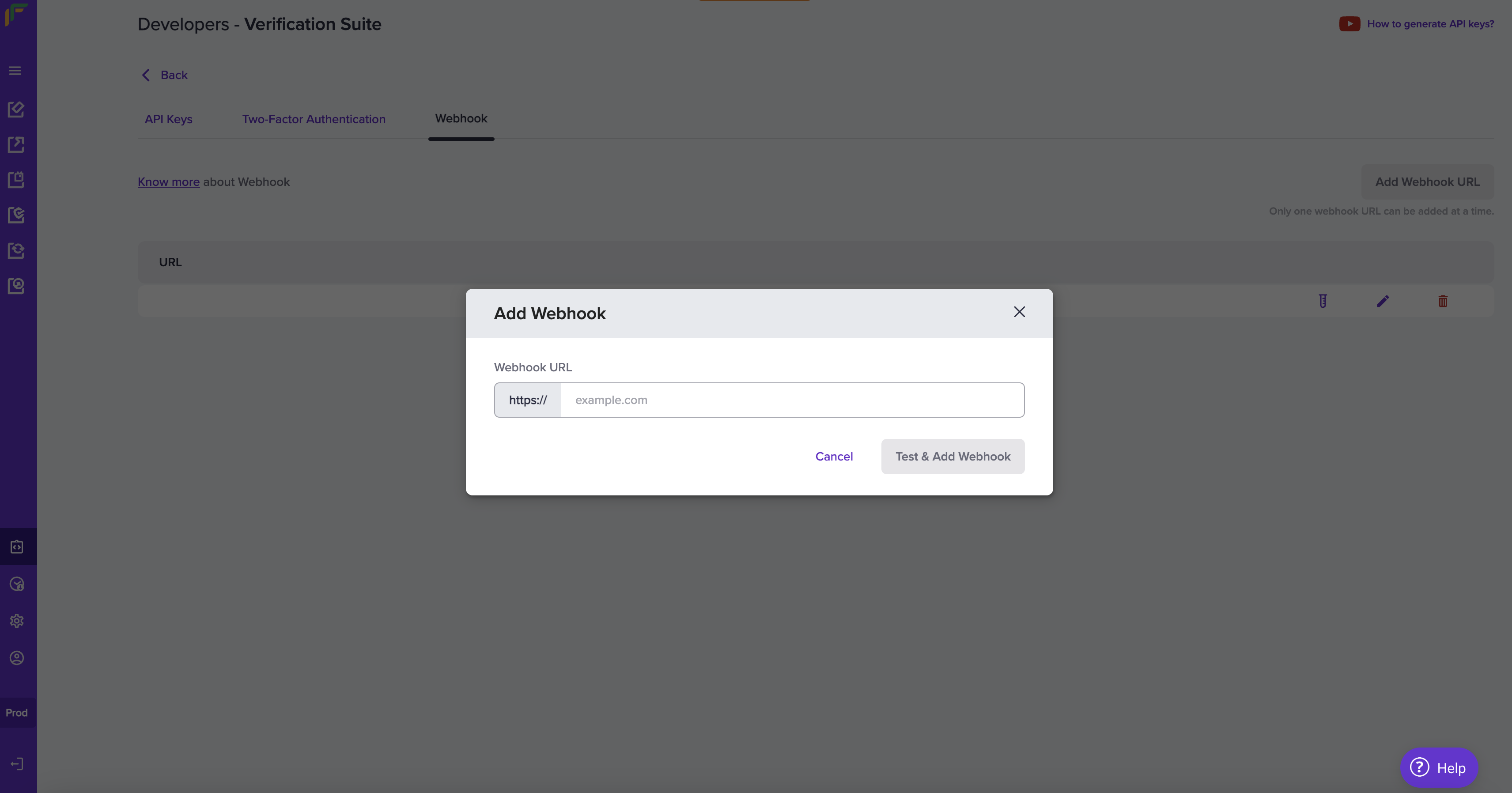 Add your webhook URL in our system for us to deliver webhook events. Follow the instructions below to configure the webhook URL. Ensure to provide the publicly accessible HTTPS URL to your webhook endpoint.- Log in to the Merchant Dashboard and click Developers.