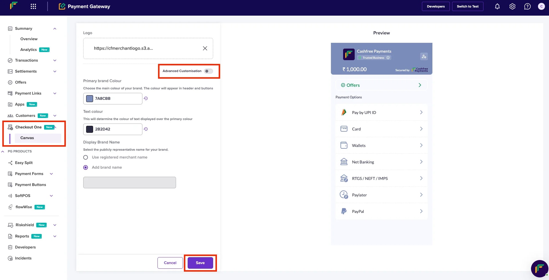 Follow the instructions below to customise the checkout page from the dashboard:- Log in to the Cashfree Payments dashboard using your credentials.