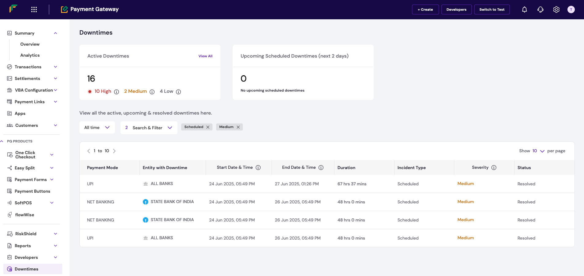 Downtimes are periods when specific payment methods or banking services experience issues that can affect transaction success rates. Downtimes can be:- Scheduled downtime: Planned outages announced by banks or payment processors.