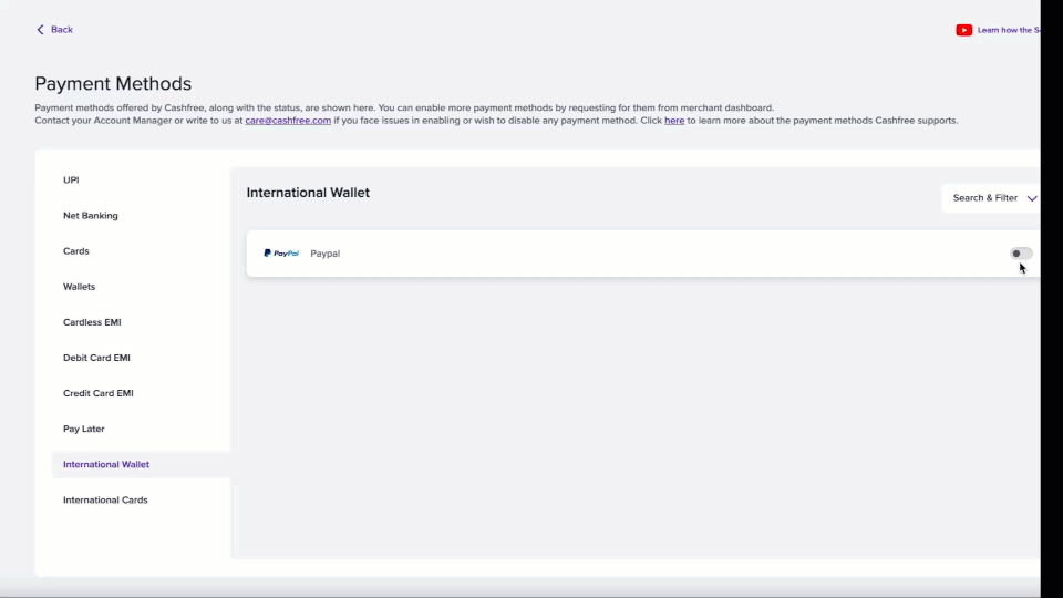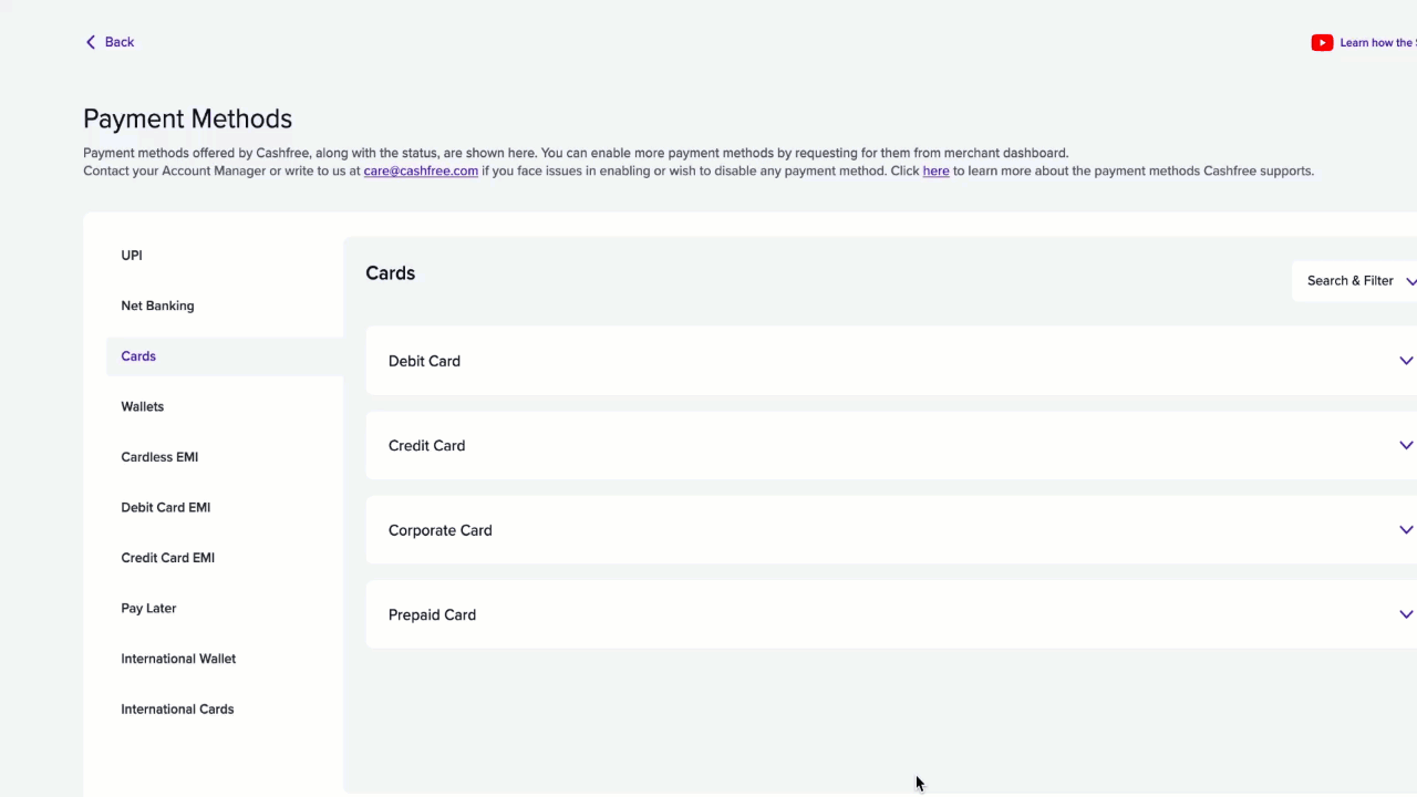 Navigate to Settings on the Merchant Dashboard and select Payment Methods under Payment Gateway to view all enabled payment modes on your account. You can also initiate a request for any payment mode directly from the dashboard.
