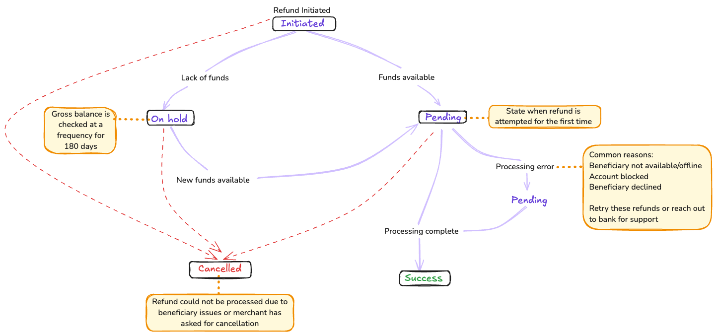 Configure refund webhooks to receive real-time notifications for both successful and canceled refunds. This enables you to build systems to update refund statuses and send customer communications. This is the payload for the refund status webhook. You can view the refund webhooks here.