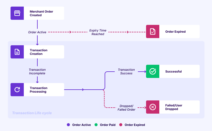 Order expiry time | Order creation time. | Duration within which a customer must initiate a payment attempt. | Once expired, no new payment attempts can be made. |