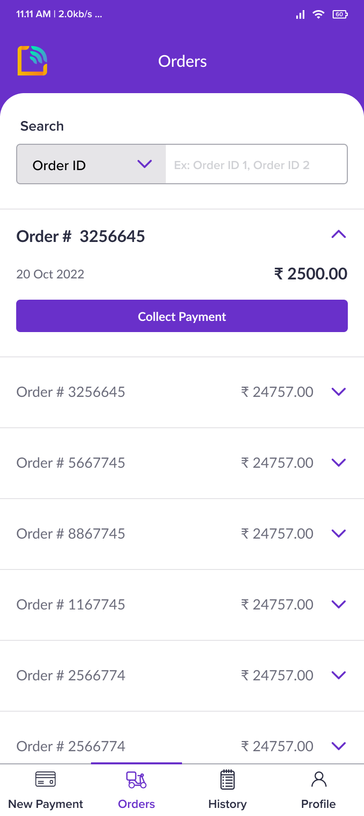 - Agent selects the payment mode and clicks on accept payment to complete the payment collection.