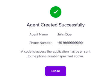 - Click Add. You will a screen as shown below after you add the agent details. An OTP to access the softPOS application will be sent on the phone number you have specified.