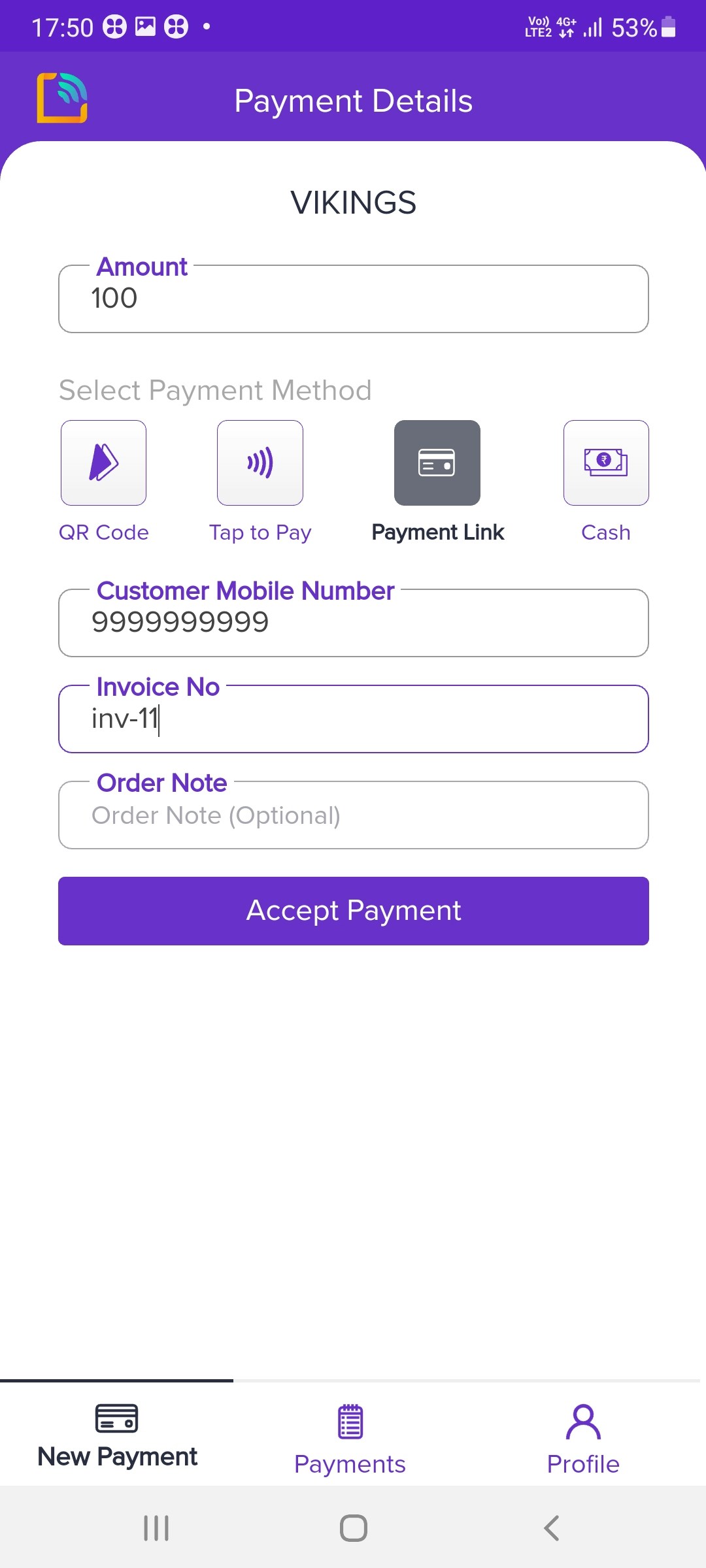 Payment Link allows you to send an SMS to a customer’s phone with a link to receive payments. Customers can click the link and make the payment. The link redirects the customer to the payment page where they can choose from a wide variety of payment options such as debit/credit card, UPI, Wallet, Net Banking, Paypal, and Pay Later options. To accept payments using Payment Link,- Tap the Payment Link option in the softPOS application.