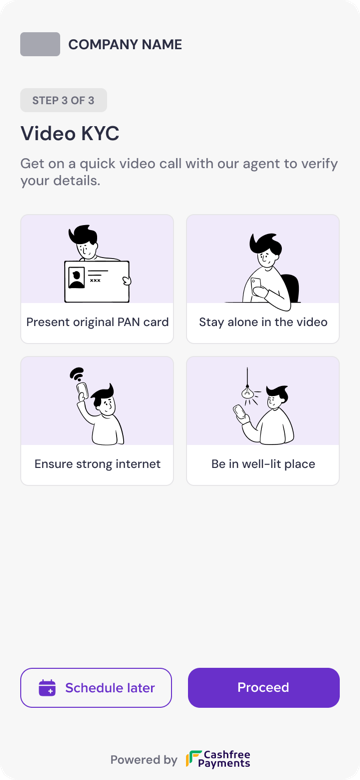Open the secure VKYC URL sent via SMS, email, or in-app notification.